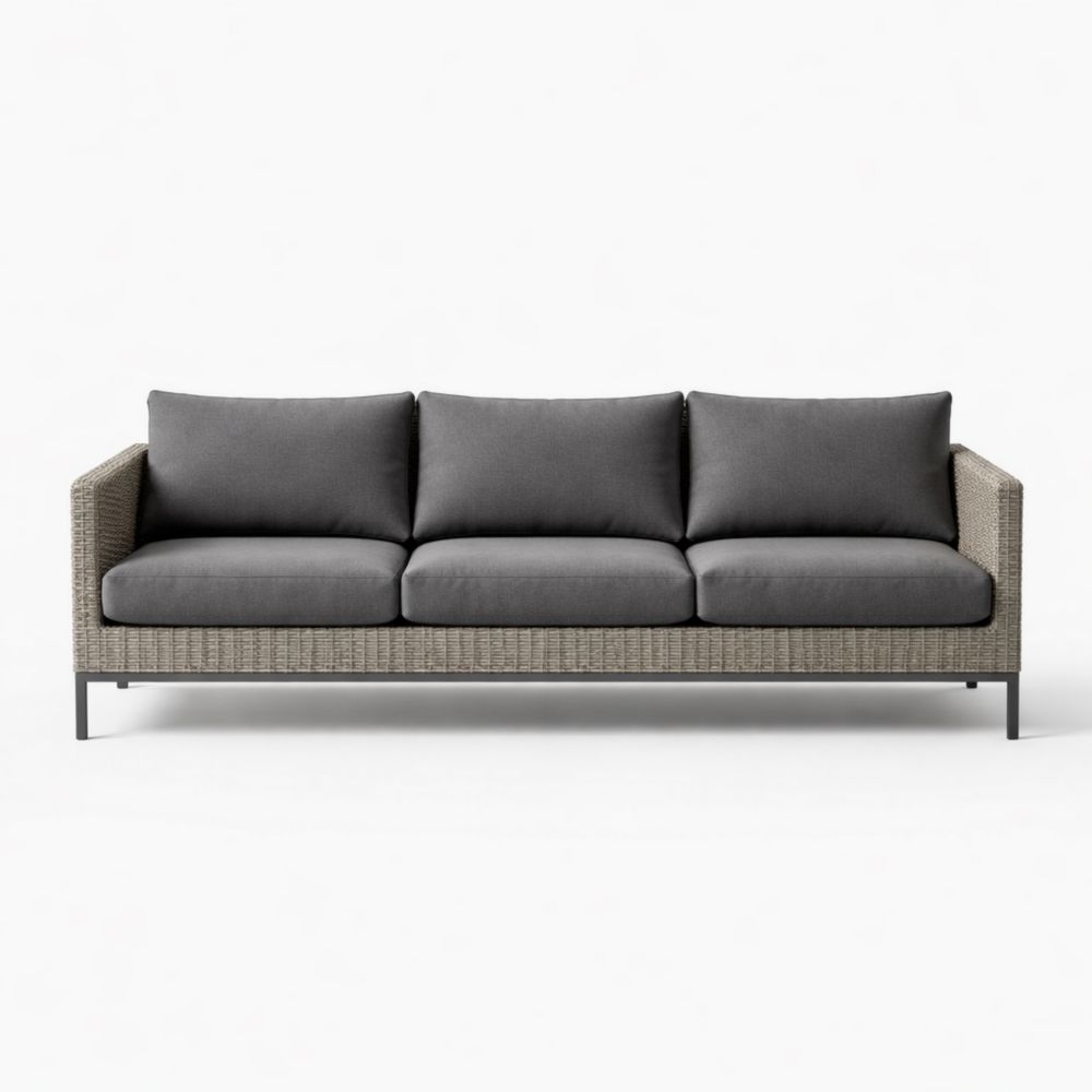 Ces fauteuils sont fabriqués en résine tressée pour la structure et sont accompagnés de coussins en polyester.